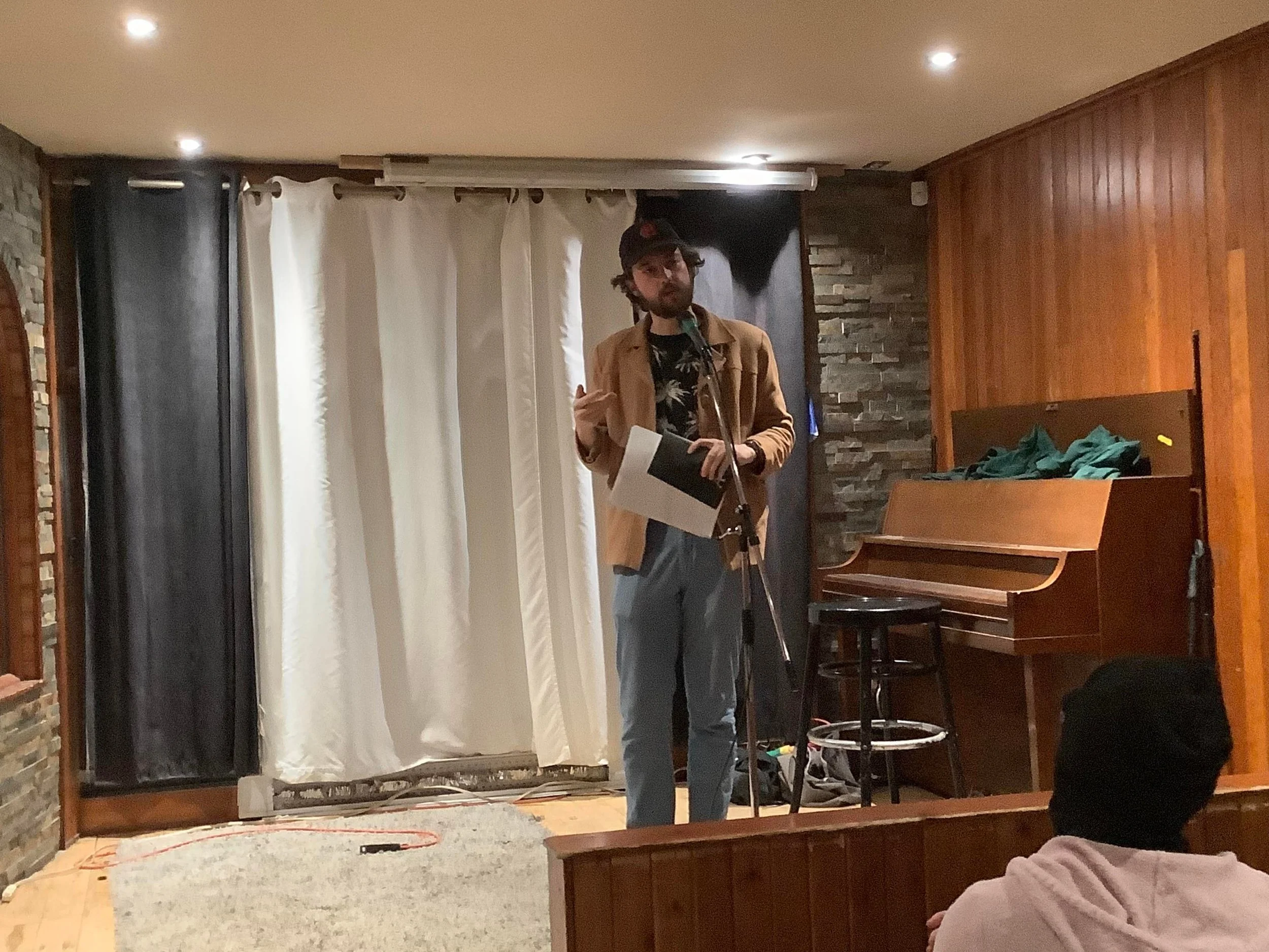 The hand belongs to Devon Gallant, editor-in-chief of Cactus Press and cohost of the evening’s shenanigans. Started in 2019 with partner in crime Luc-Antoine Chiasson, this bimonthly series, affectionately known by locals as “Accent Open Mic,” was founded from a desire to give writers in Montreal a platform to share their work on a continual basis.