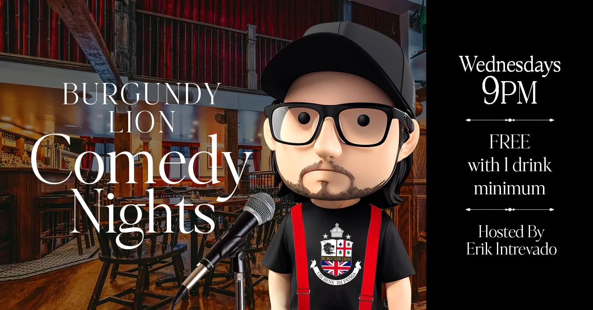 Peel Pub Comedy is now at the Burgundy Lion! Tonight is the first night! Erik Intrevado hosts his popular Weekly Wednesday Comedy Night in a new spot, and you can expect some familiar funny faces!