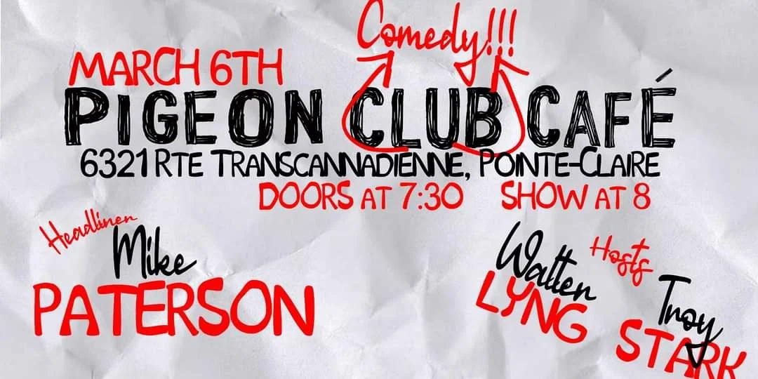 It's the 4th edition of comedy at the Pigeon Club Café, and hosts Walter Lyng and Troy Stark will have you cracking up as they keep the show moving. Mike Paterson headlines, and the laughs just keep coming. Bribe your driving friends, or have a public transit adventure, you'll be glad you did.